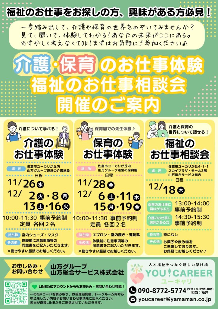 介護・保育のお仕事体験と福祉のお仕事相談会を開催いたします。